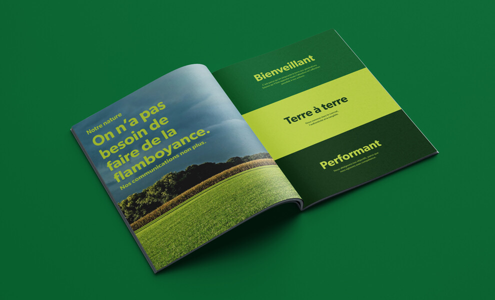 La Coop fédérée fut créée par et pour les producteurs, mais sa vocation a évolué pour devenir l’un des plus grands joueurs agroalimentaires pancanadiens. Rassemblant plus de 550 marques, un nouveau nom bilingue ainsi qu’une architecture simplifiée devaient voir le jour pour assurer la prospérité des producteurs. À l’aube de ses 100 ans, dans une ère d’innovation technologique et de transformation environnementale, La Coop fédérée devait lancer un signal clair de changement. Nous devions aussi distinguer les communications de Sollio Groupe coopératif, qui s’adressent au grand public et aux membres des communications de Sollio Agriculture, qui visent les producteurs.