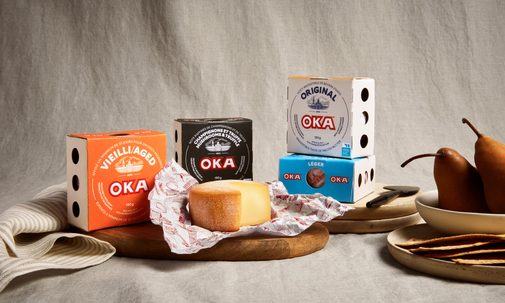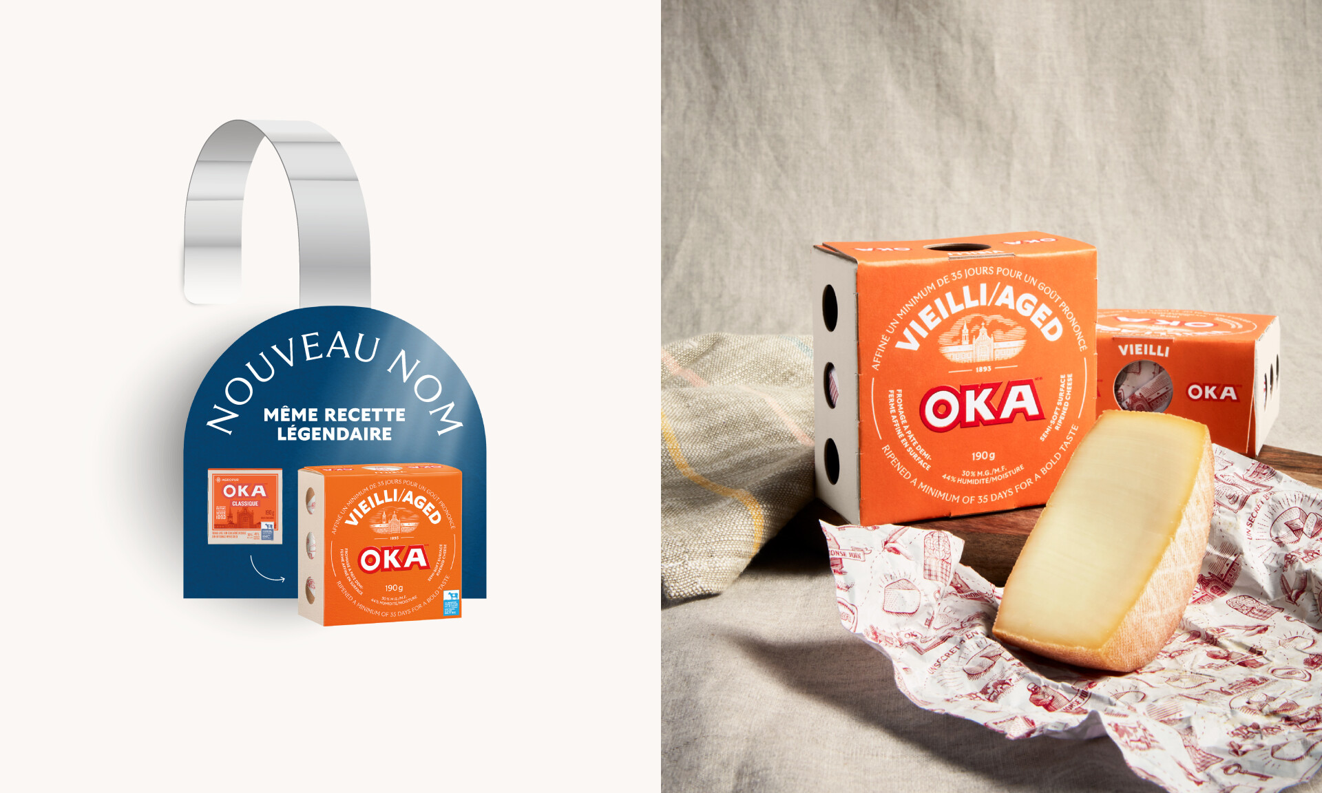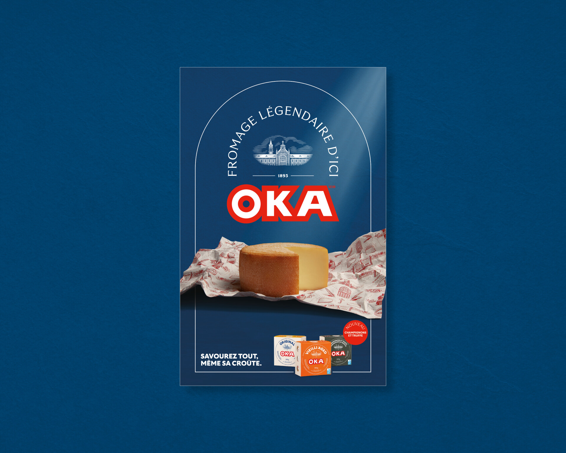 Depuis 1893, les fromages OKA ont une place de choix dans le cœur des Québécois. Pour moderniser la marque et augmenter la perception de valeur, K72 a revu toute la plateforme de marque. Avec le nouveau look raffiné des emballages, l’ajout de notes de goût et une nomenclature simplifiée, les consommateurs peuvent naviguer facilement à travers les différentes variétés de fromages et faire des choix en toute confiance. Sur le papier d’emballage, l’histoire des fromages OKA est à l’honneur grâce aux nouvelles illustrations style gravure. Tout comme dans les affiches en magasin et dans les autres communications, on se positionne sur la notion de légende. De cette façon, on affirme haut et fort qu’on est, encore et toujours, une valeur sûre. OKA, c’est légendaire.